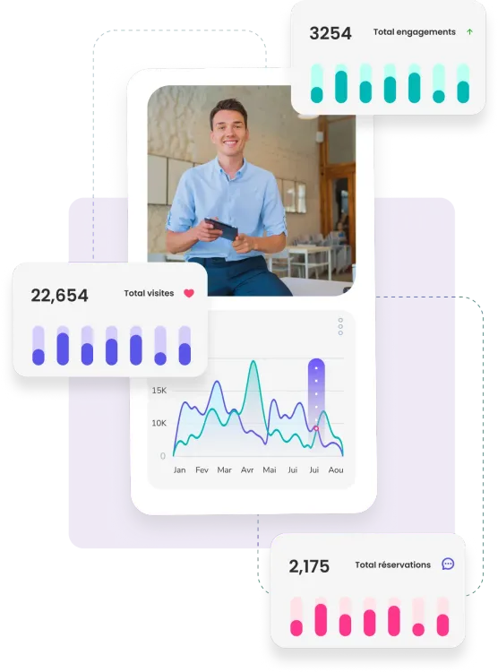 Une solution de réservation en ligne permet de réduire le temps consacré aux appels téléphoniques, d'assurer une mise à jour précise des disponibilités et d'éviter les erreurs de réservation. Votre taux de conversion s’améliore, votre planning se remplit sans effort et vous êtes moins dépendant des OTA.