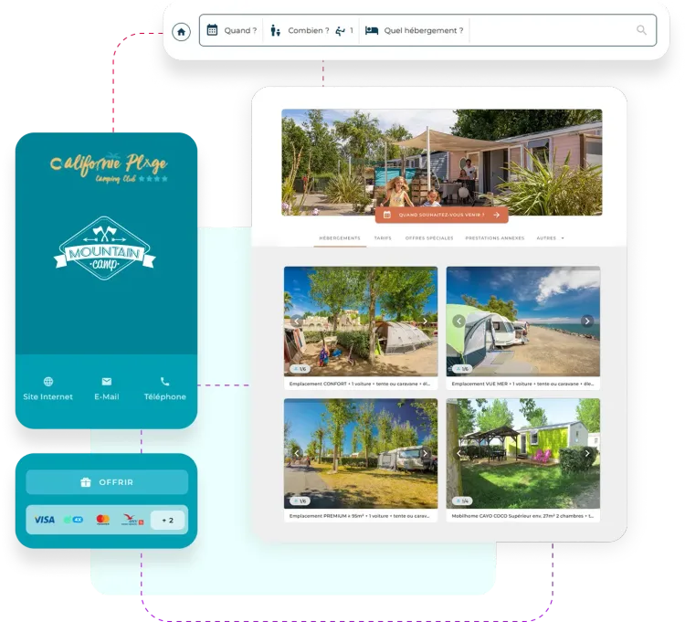 Grâce à cette solution, les clients accèdent à toutes les informations nécessaires sur votre portail et peuvent effectuer des réservations sur l'ensemble des destinations du groupe. Une seule recherche suffit pour obtenir une liste complète des hébergeurs disponibles, simplifiant ainsi le processus de réservation.